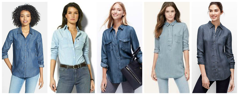 So comfortable and flattering — pair your fave chambray style shirt with (white) denim, or a patterned skirt for an easy and interesting outfit. If you do not already own of these babies — they are a must. You will wear it all year long, layered under sweaters or over a t-shirt.